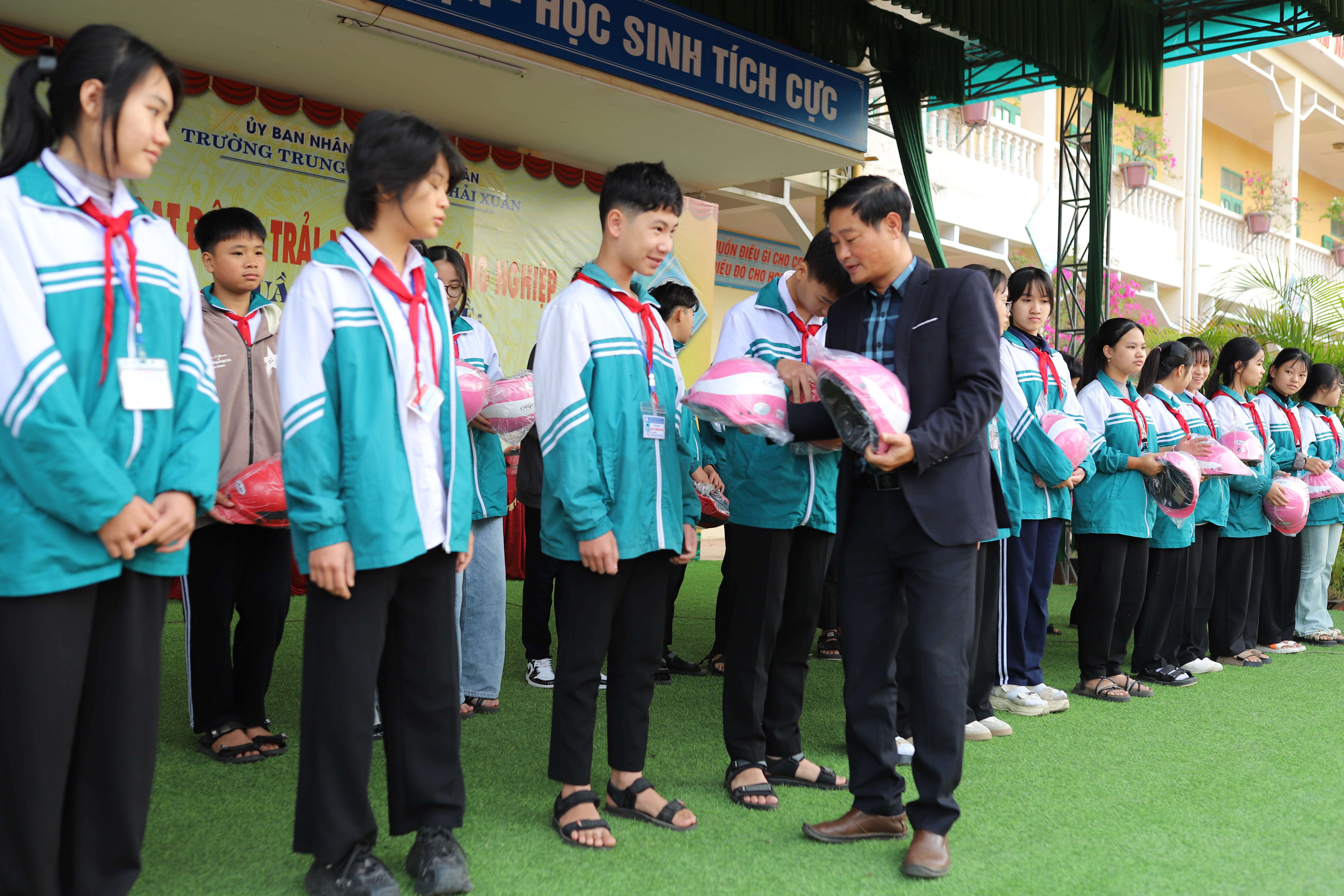 HỘI DOANH NHÂN HỌ MAI NAM ĐỊNH VÀ TẬP ĐOÀN QUỐC TẾ Á CHÂU TẶNG HƠN 100 MŨ BẢO HIỂM CHO HỌC SINH TRƯỜNG THCS HẢI XUÂN