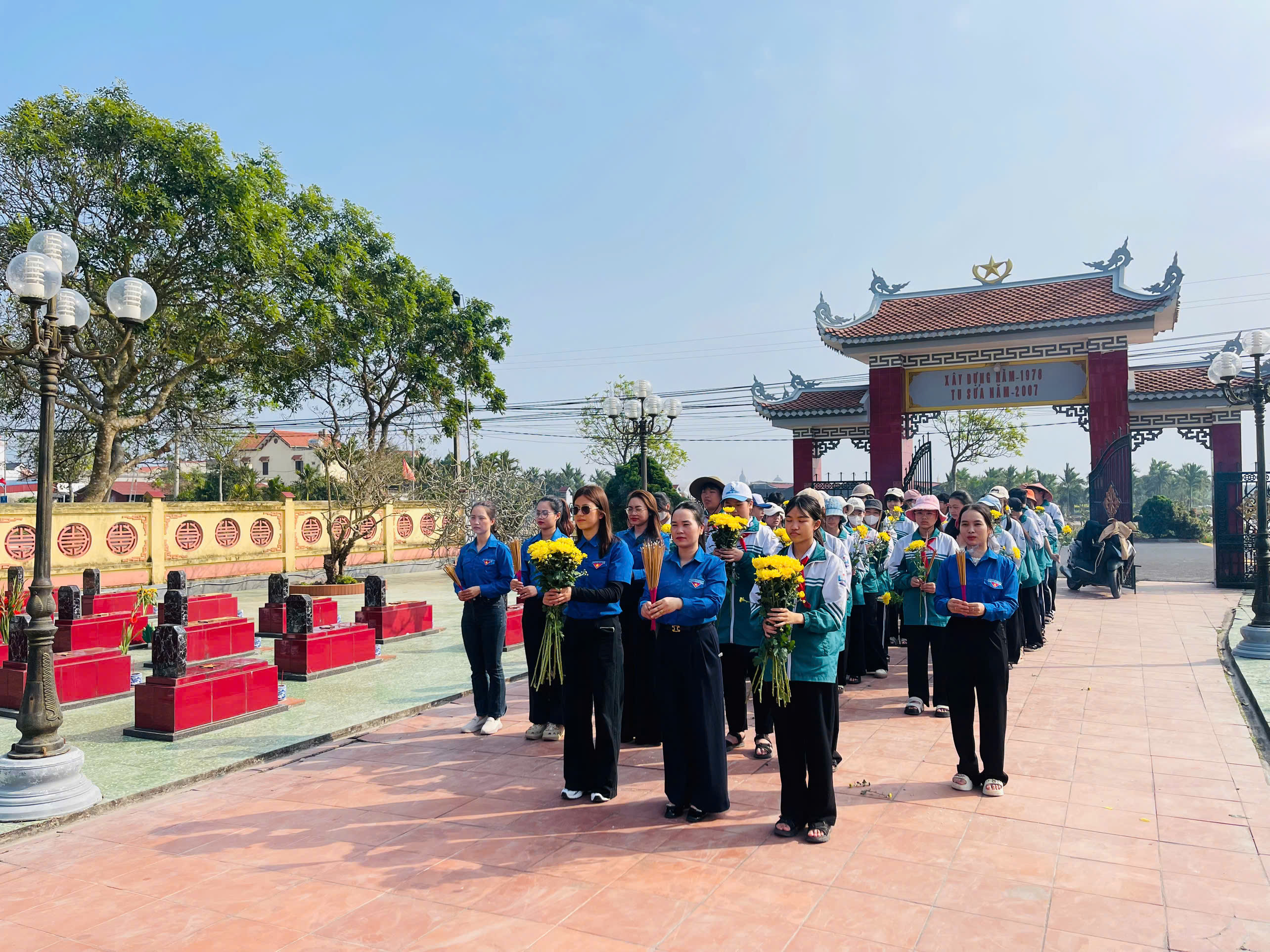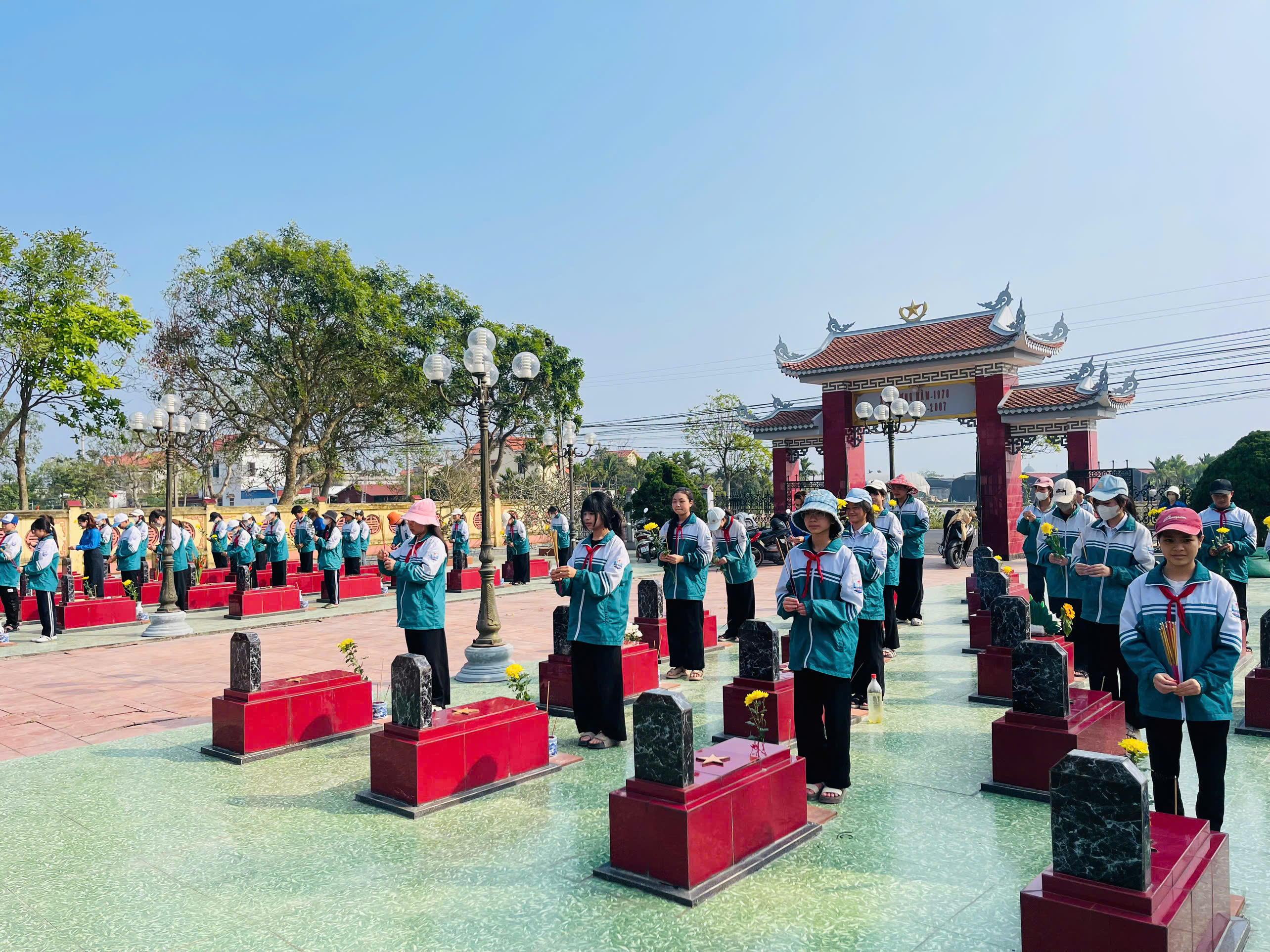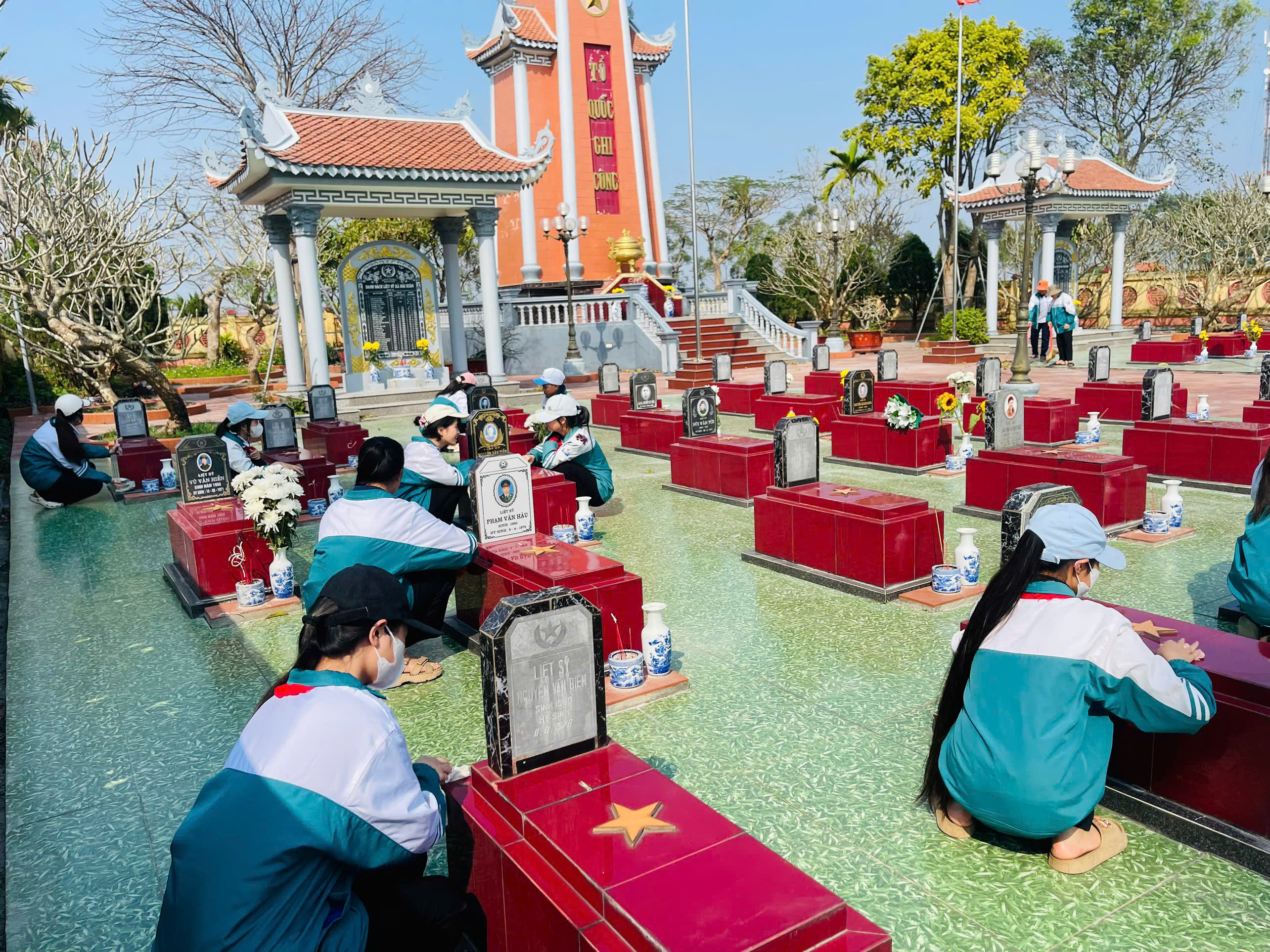Tuổi trẻ Trường THCS Hải Xuân dâng hoa kính dâng lên các phần mộ Liệt sỹ