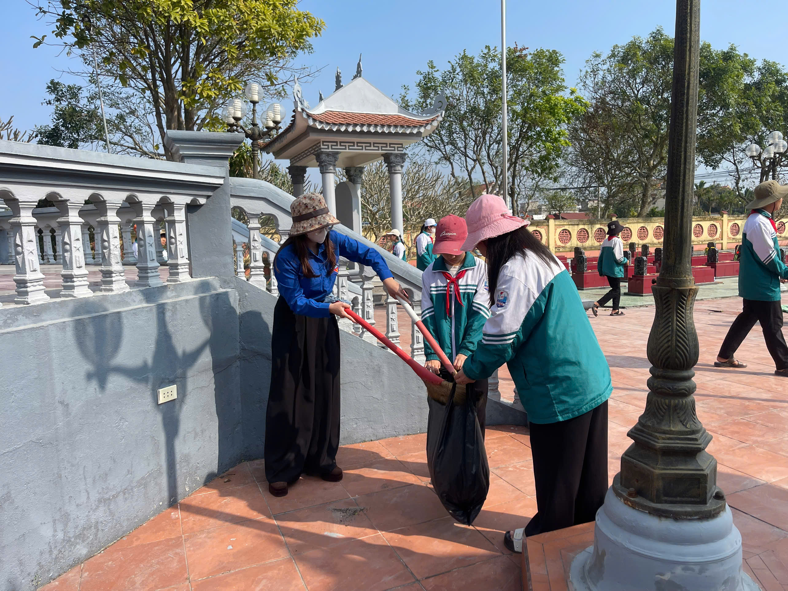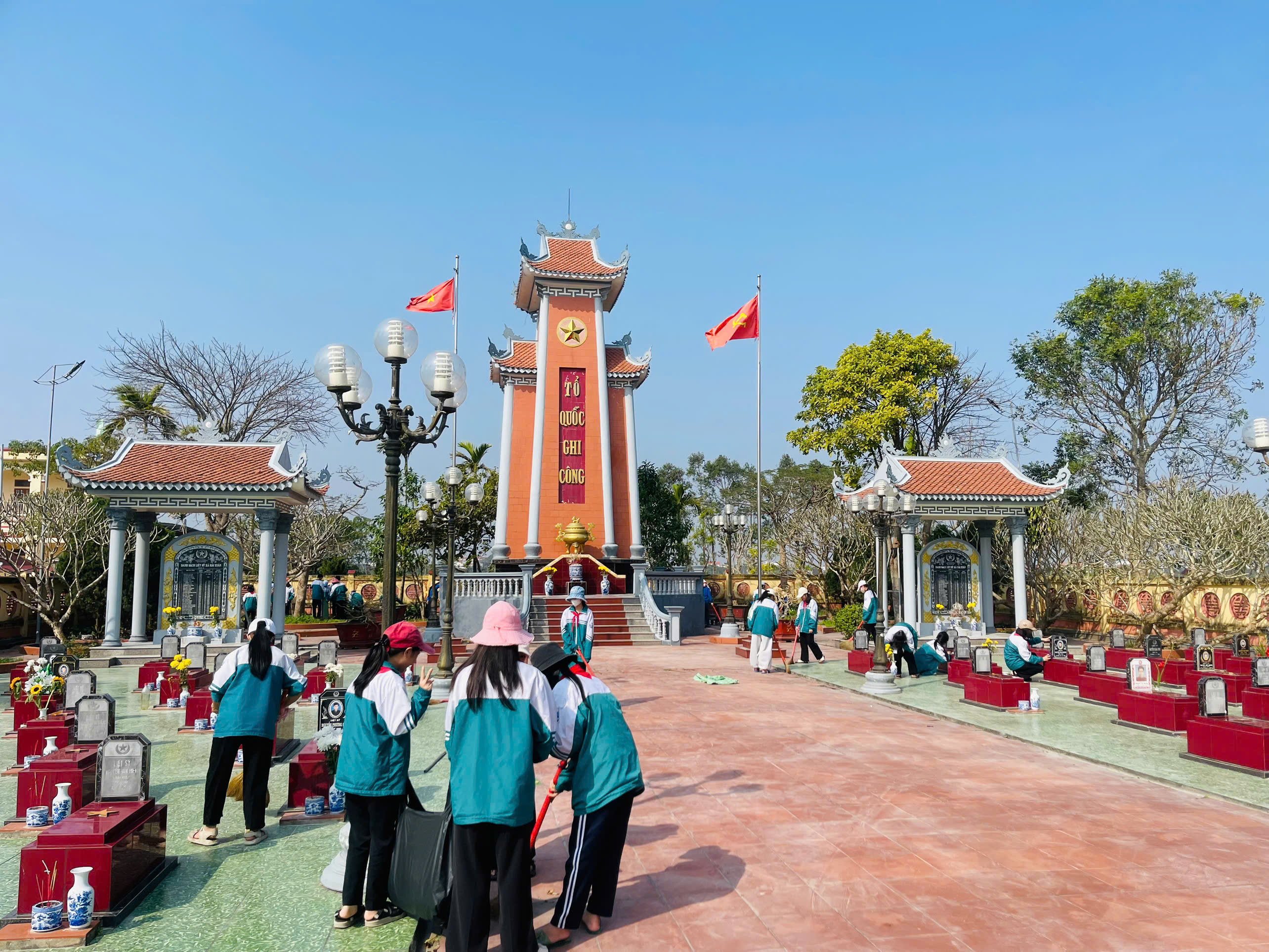 Đoàn viên và học sinh Trường THCS Hải Xuân vệ sinh nghĩa trang Liệt sỹ